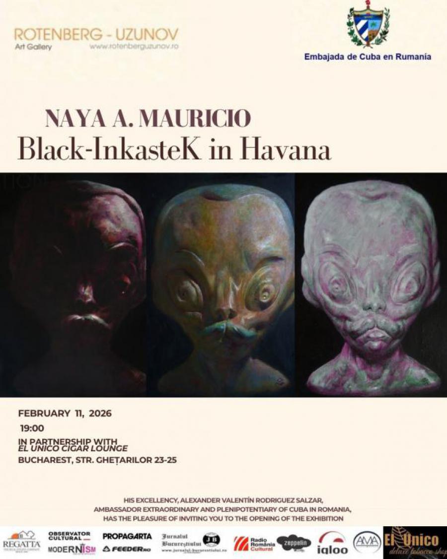 La Embajada de Cuba en Rumanía y la Galería de Arte Rotenberg‑Uzunov realizaron el pasado 11 de febrero de 2026 la inauguración oficial de la exposición “Black‑InkasteK in Havana”, del artista cubano Naya A. Mauricio. La muestra estuvo abierta al público desde el 10 hasta el 13 de febrero, en colaboración con El Unico Cigar Lounge, el Caesar Club y otros importantes socios culturales y mediáticos.