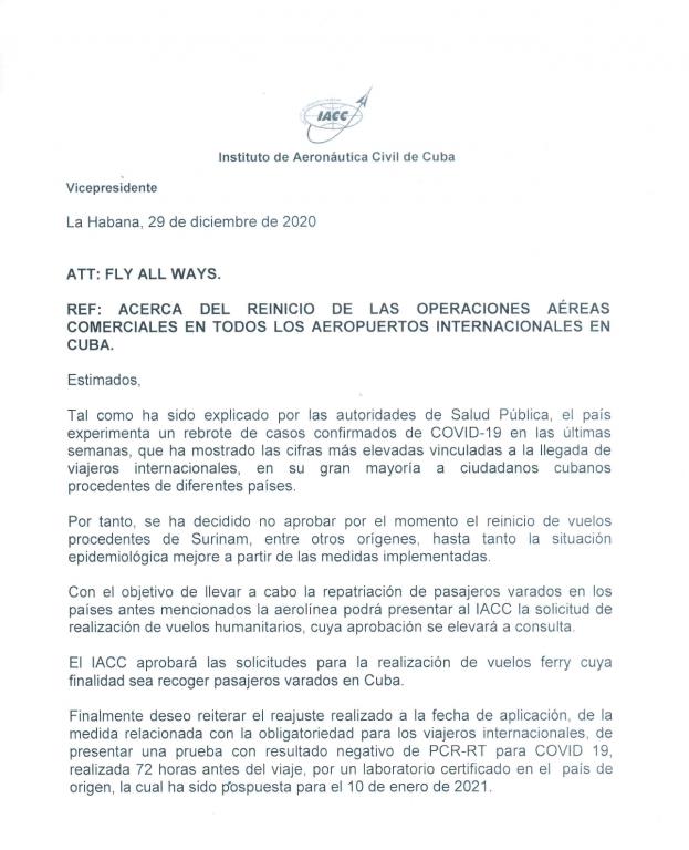 Ene042021 Ver nota original en la foto. Categoría: Comunidad cubanaSituaciones ExcepcionalesRSS Minrex:
