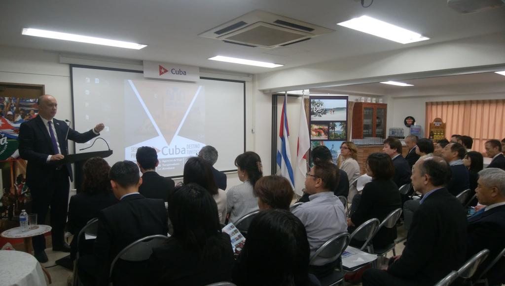 Tokio, 18 de abril de 2019-. La Embajada de Cuba en Japón acogió esta tarde un Seminario de Promoción Turística del destino cubano en el país asiático, con la participación de más de sesenta representantes de unas treinta agencias de viajes, turoperadores y aerolíneas, y coorganizado con la Asociación Japonesa de Agencias de Viajes (JATA, por sus siglas en inglés).