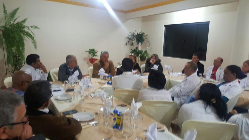 Vallegrande, Bolivia, 27 de mayo de 2017.- El primer vicepresidente de los Consejos de Estado y de Ministros de Cuba, Miguel Díaz-Canel Bermúdez, se reunió este sábado con profesionales de la Brigada Médica Cubana (BMC) en Vallegrande.