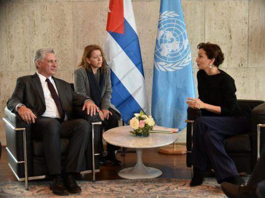 El Presidente de los Consejos de Estados y de Ministros y la Directora General de la UNESCO, Audrey Azoulay, subrayaron este jueves las estrechas relaciones existentes entre la isla y esa organización de Naciones Unidas, durante un encuentro celebrado en París.