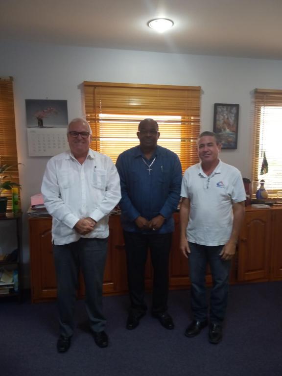 Roseau, 8 de mayo de 2019. Una reunión para tratar temas vinculados al “Acuerdo de Cooperación entre el Ministerio de la Construcción de la República de Cuba y el Ministerio de Viviendas y Tierras en la Mancomunidad de Dominica, para la Recuperación Constructiva en la Mancomunidad de Dominica”, firmado el 14 de junio de 2018, se realizó en la tarde de ayer, 7 de mayo de 2019, en la sede del gobierno de este país. En la reunión participaron el Embajador de Cuba, Ulises Arranz Fernández y el Jefe de la Brigada de constructores cubanos, Ing. Juan Antuch Suarez. Por la parte de Dominica estuvo presente el Embajador Steve Ferrol, Secretario del Gabinete del Primer Ministro,