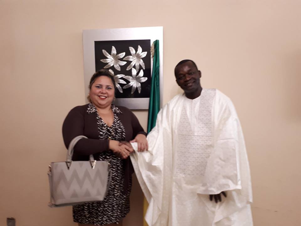 Senegal, 30 de septiembre de 2018: En la mañana de ayer, Alioune Sarr, Ministro de Comercio, del Sector Informal , del consumo, la promoción de productos locales y las PYMES, recibió la visita de cortesía de la Embajadora cubana en Dakar, Saylín Sánchez Portero, en la sede de su gabinete ministerial, quien le hizo entrega de la invitación de su homólogo cubano Rodrigo Malmierca, a participar en la 36 edición de la Feria Internacional de La Habana (FIHAV 2018), en cuyo marco se celebrará, además, el III Foro de Inversiones.