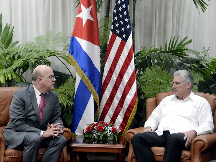 El Presidente de los Consejos de Estado y de Ministros, Miguel Díaz-Canel Bermúdez, recibió en la tarde de este viernes al congresista demócrata por el estado de Massachusetts, James McGovern, presidente del Comité de Reglas de la Cámara de Representantes del Congreso de los Estados Unidos, quien se encuentra de visita en nuestro país acompañado por una representación del Consejo Nueva Inglaterra, asociación regional de negocios que representa organizaciones del sector público y privado del área Nueva Inglaterra en los Estados Unidos, la cual abarca los seis estados del nordeste: Maine, Vermont, New Hampshire, Massachusetts, Rhode Island y Connecticut.
