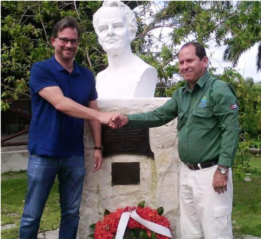 El representante germano, acompañado de Carlos Alberto Díaz Masa, director del Centro Nacional de Áreas Protegidas (CNAP), depositó una ofrenda floral ante el busto del insigne naturalista alemán Humboldt, considerado el segundo descubridor de la mayor de las Antillas, ubicado en la Estación Ecológica Bahía de Taco.