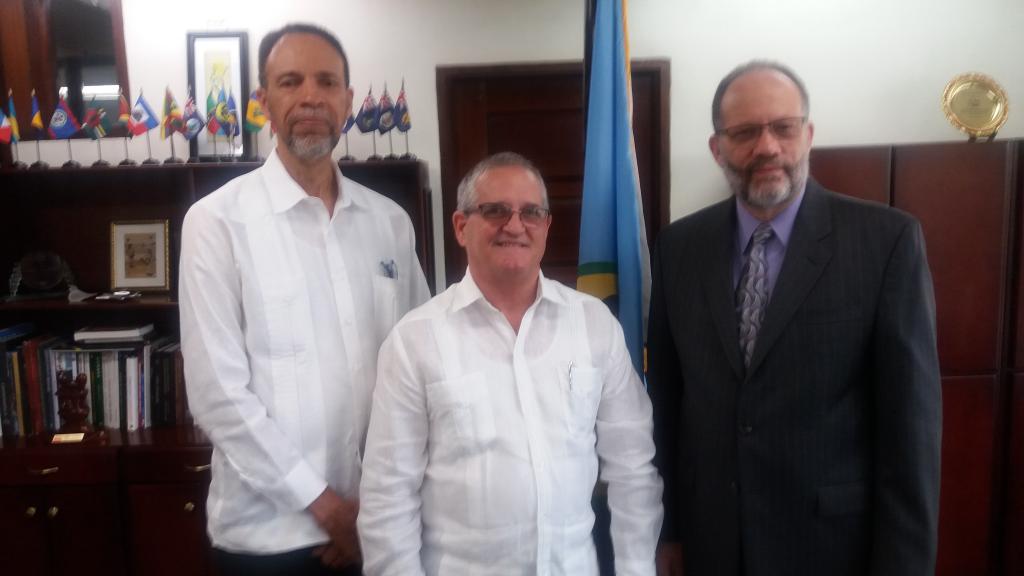 Guyana, 27 de noviembre del 2017. El Embajador Irwin LaRocque, Secretario General de la CARICOM, despidió hoy al Embajador Julio César González Marchante quien se encuentra en vísperas de concluir próximamente su misión diplomática en Guyana y como representante de Cuba ante este organismo regional. Estuvo presente también el Embajador Colin Granderson, Asistente para las Relaciones Exteriores y de la Comunidad.