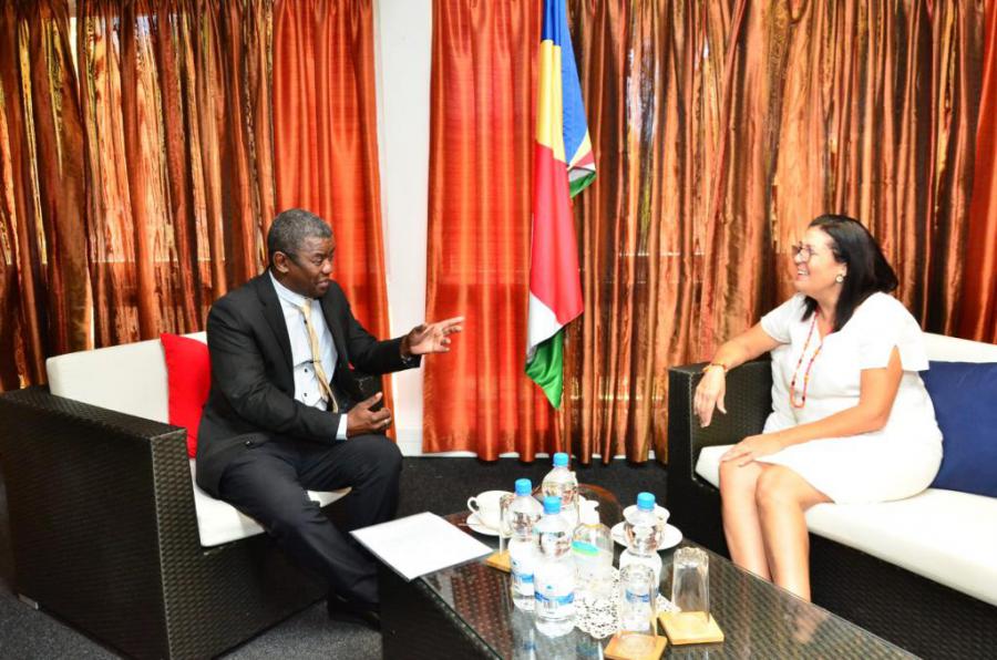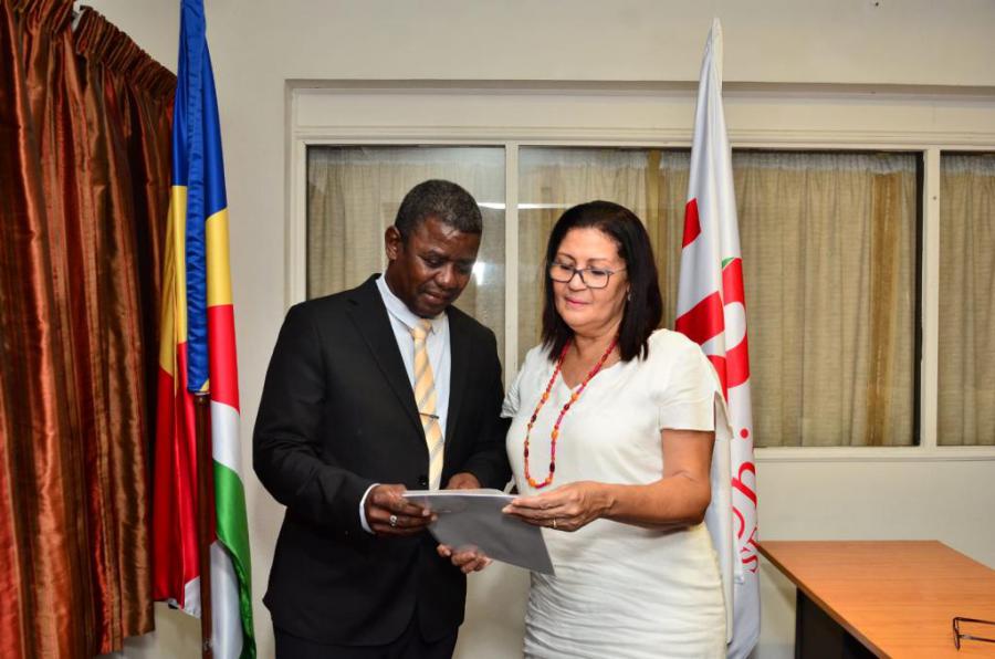 Victoria, Seychelles, 16 de abril de 2026: El secretario general del partido United Seychelles, Paul Ernesta, recibió a la embajadora de la República de Cuba en ese país, Iraida Guerrero Zúñiga. El encuentro se realizó en la sede de la organización política.