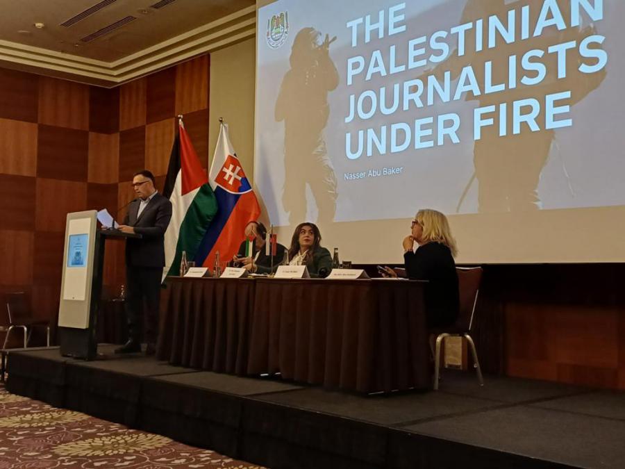 El seminario convocado por la Embajada de Palestina se tituló "Los periodistas palestinos bajo fuego". El ponente principal fue el Sr. Nasser Abu Baker, presidente del Sindicato de Periodistas y vicepresidente de la Federación Internacional de Periodistas (FIP), quien denunció los crímenes contra el pueblo palestino y contra 524 periodistas.