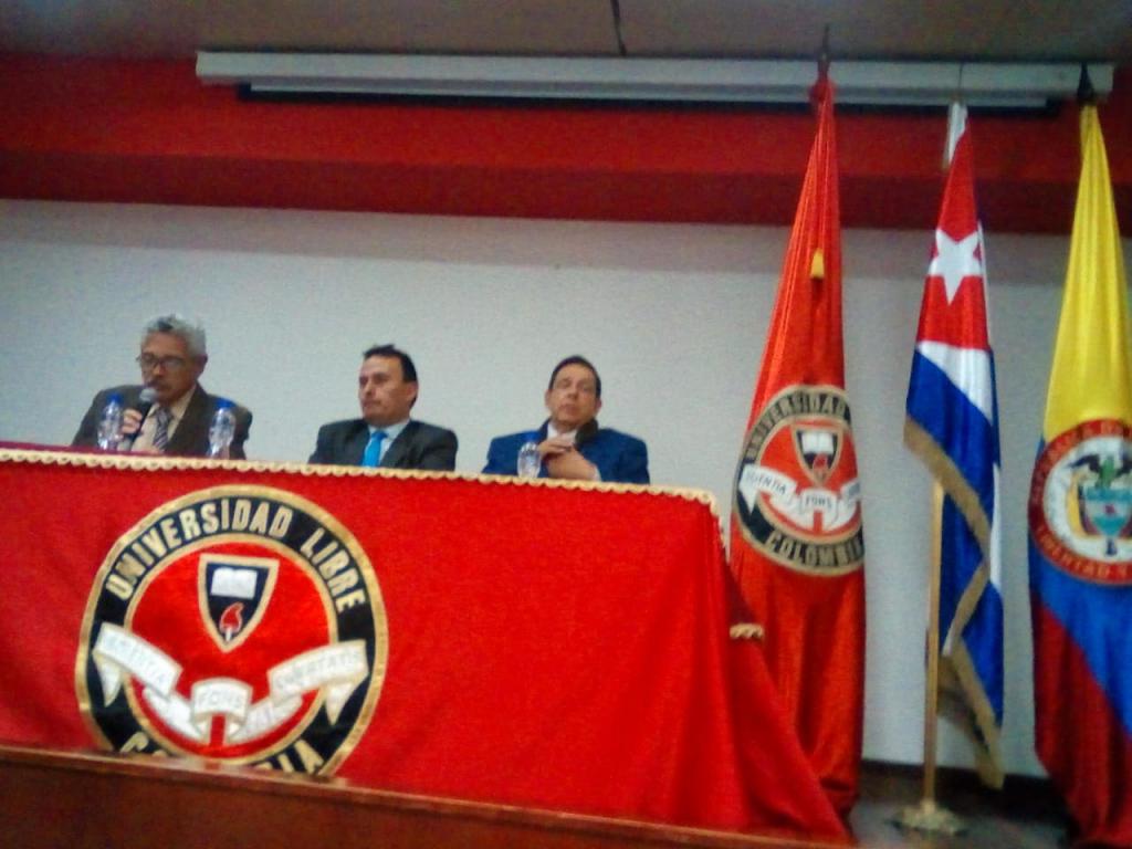 La inauguración estuvo a cargo del secretario general de la Universidad Libre, profesor Floro Hermes Gómez Pineda, quien reiteró en sus palabras el compromiso de ese alto centro de estudios con el legado de Bolívar y Martí.