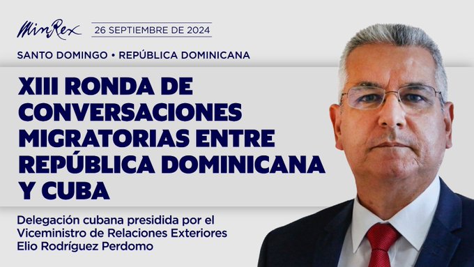 La Habana, 25 de septiembre de 2024.- La XIII Ronda de Conversaciones Migratorias entre República Dominicana y la República de Cuba tendrá lugar en Santo Domingo, el jueves 26 de septiembre.