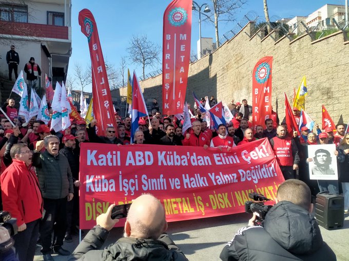 Los sindicatos Birleşik Metal-İş (@BirlesikMetal) y Nakliyat-İş (@Nakliyatsendika) se reunieron frente al Consulado General de Estados Unidos en Estambul para protestar y expresar su solidaridad con el pueblo cubano.