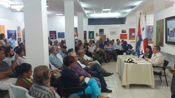 Ciudad de Panamá, 6 de marzo.- Miembros de la Coordinadora Nacional de Solidaridad con Cuba, representantes de organizaciones políticas, sindicales, estudiantiles y sociales, y amigos solidarios con Cuba, se dieron cita en la Galería Manuel E. Amador de la Universidad de Panamá, en un encuentro de hermandad y solidaridad con el Canciller cubano Bruno Rodríguez Parrilla y la delegación que lo acompaña.