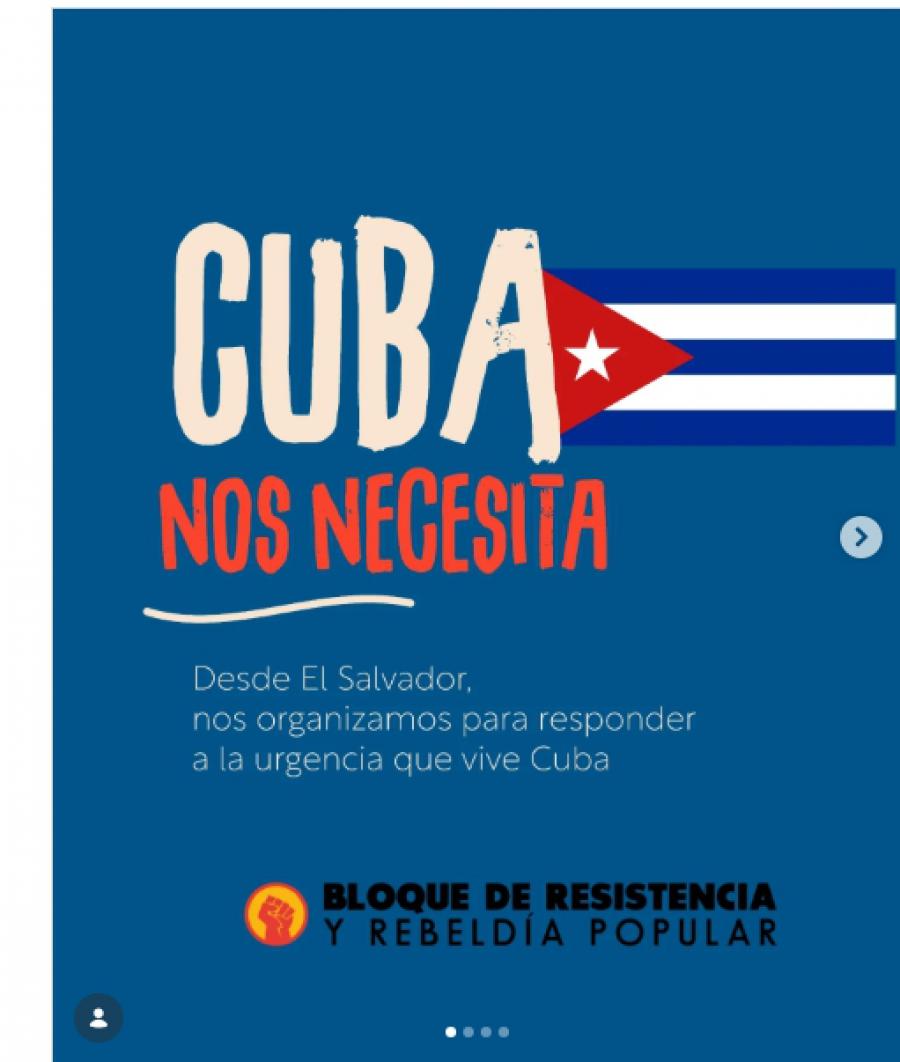 Bajo el lema ¡Somos de pueblos que se han salvado en comunidad!, la entidad que agrupa a organizaciones de diversos sectores indicó en un comunicado: “Hoy Cuba nos necesita y desde El Salvador respondemos con solidaridad” a la urgencia que vive la isla antillana.