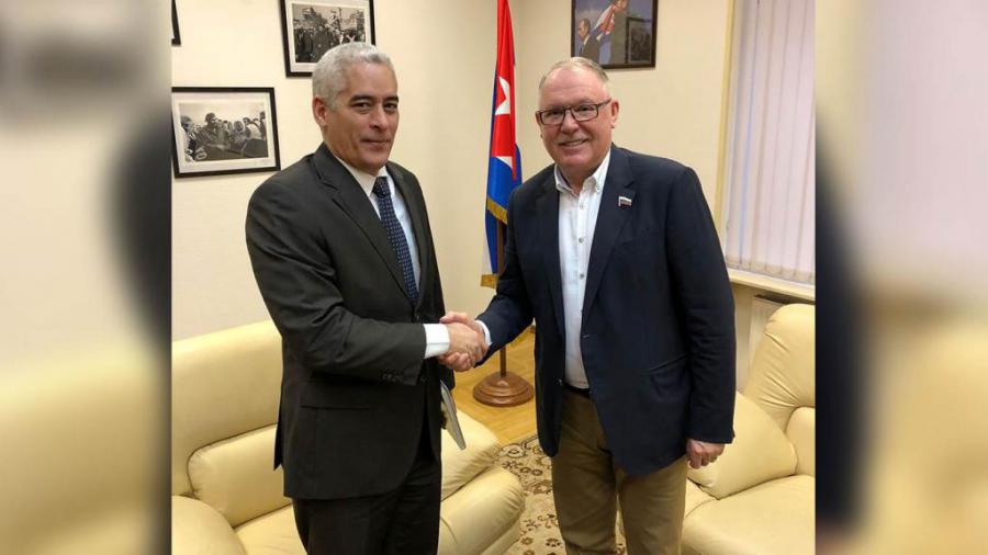 Moscú, 19 de marzo- El embajador cubano Gerardo Peñalver Portal sostuvo un encuentro con el Secretario del Presídium del Consejo Central del partido Rusia Justa para los Asuntos Internacionales, Alexander Romanovich, quien es además Vicepresidente de la Internacional Socialista, en la sede de la Misión diplomática de la Isla en Moscú.