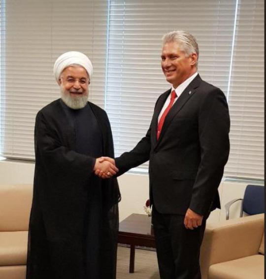 El mandatario iraní, que asumió el cargo en agosto de 2013, realizó en septiembre de 2016 una visita oficial a Cuba, momento en que fue recibido por el Comandante en Jefe Fidel Castro Ruz y el General de Ejército Raúl Castro Ruz.