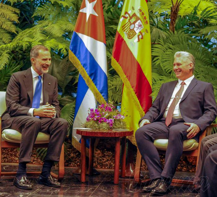 El Presidente de la República de Cuba, Miguel Díaz-Canel Bermúdez, recibió este martes en el Palacio de la Revolución de La Habana a los Reyes de España.
