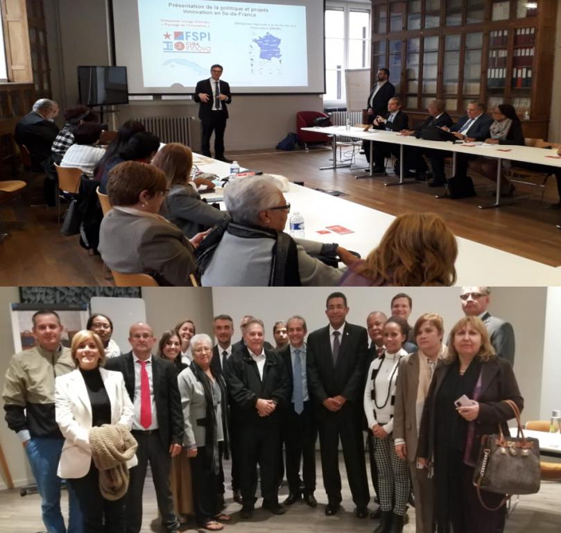 París, 10 octubre 2022 – En el marco del Proyecto con Fondos de Solidaridad para la Innovación (FSPI) Cuba Innova, una delegación cubana de 25 personas representantes de universidades de todo el país y pequeña representación de los organismos CITMA, BIOCUBAFARMA, MES y MINCEX, encabezada por el viceministro del CITMA Armando Rodríguez Batista fue recibida por directivos del Ministerio de la Educación Superior y la Investigación de Francia, donde abordaron la experiencia francesa en el sector de la innovación así como sus desafíos.