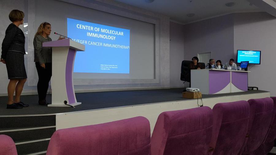 El programa inició en el ámbito académico y médico con una conferencia magistral impartida en el Instituto de Oncología y Radiobiología de Almaty, Kazajstán, por la Dra. Sc. Mayra Ramos Suzarte, jefa del Dpto. de Ensayos Clínicos del Centro de Inmunología Molecular.