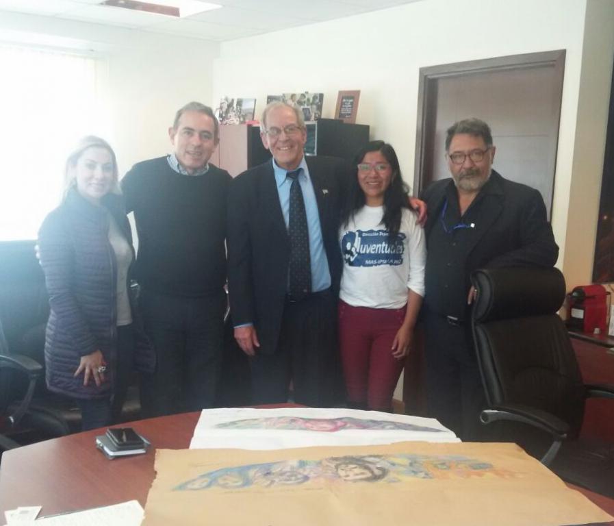 La Paz, Bolivia, 26 de abril de 2018.- El ingeniero César Dockweiler Suárez, Gerente Ejecutivo de la Empresa de Transporte por Cable “Mi Teleférico” recibió este miércoles a Eric Valdés, consejero político de la Embajada de Cuba en Bolivia, con quien acordó realizar el mural “La Revolución Cubana”, en una pared de 26 metros de la estación intermedia de la Línea Roja que enlaza la ciudades de La Paz y El Alto.