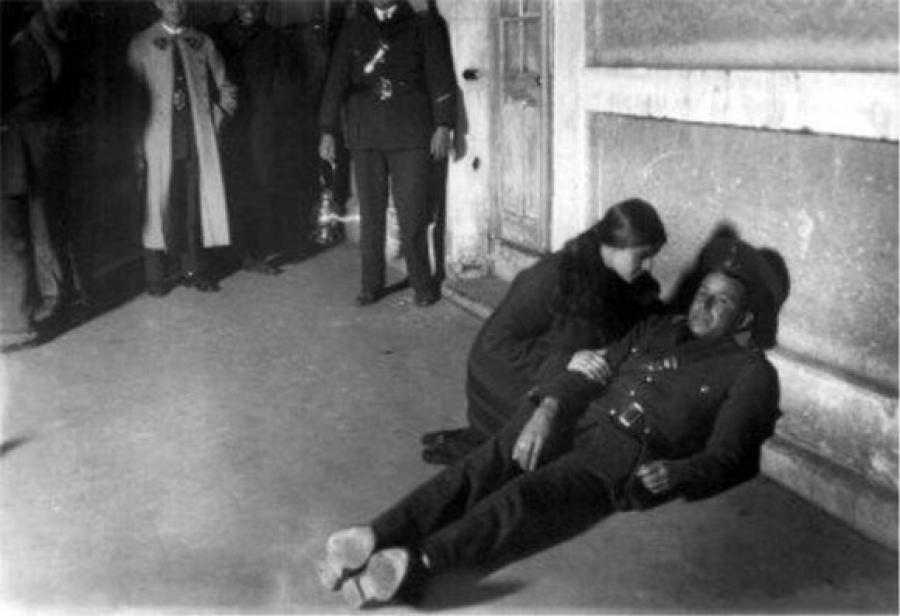 Tina Modotti durante la reconstrucción del asesinato de Julio Antonio Mella. Foto: Colección Archivo Casasola