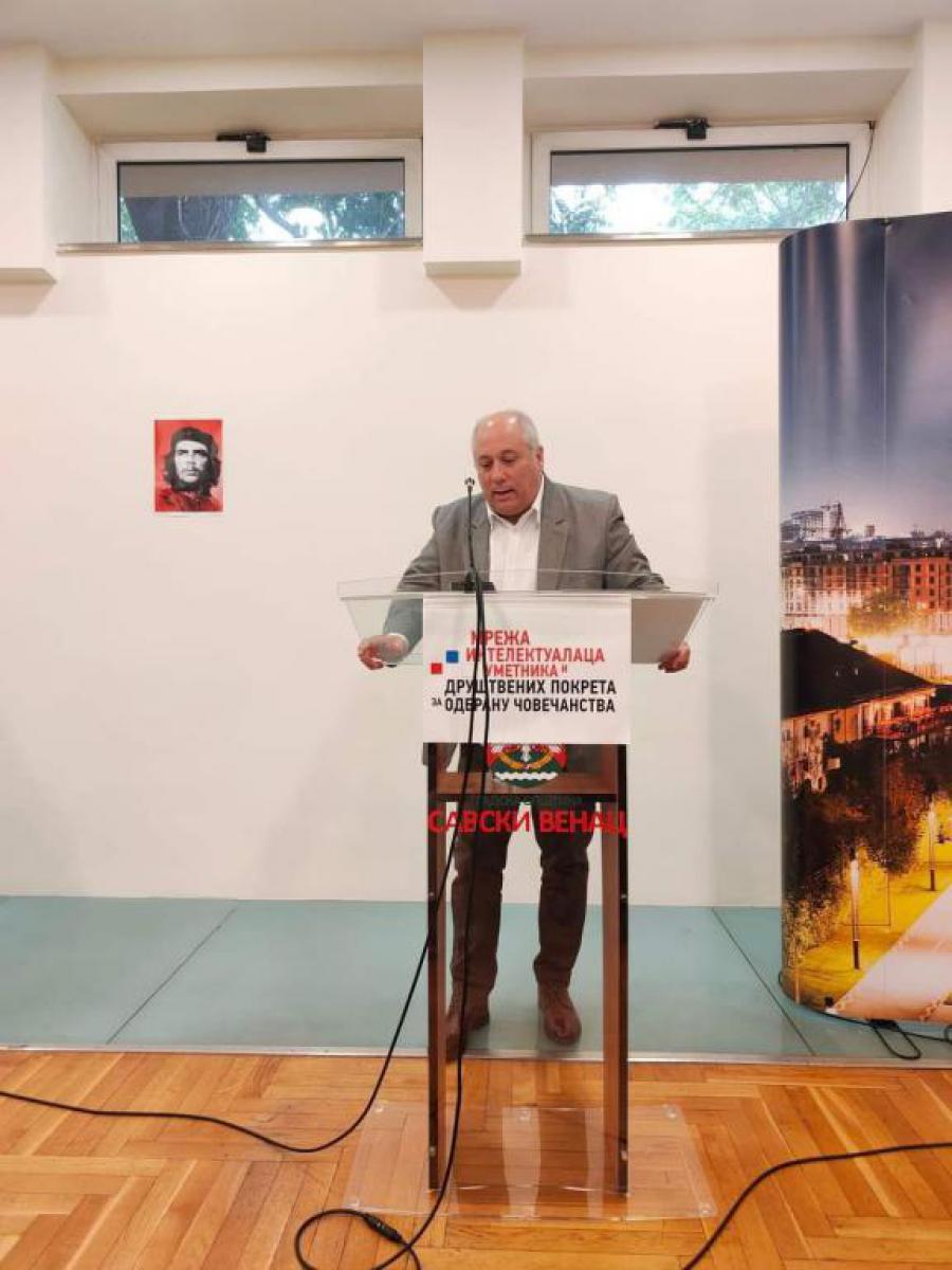 Alpidio Alonso Grau, Ministro de Cultura de Cuba, principal orador del encuentro, ofreció una conferencia en la que expresó “todos somos Palestina” y agradeció la solidaridad permanente de Serbia hacia el pueblo cubano. Dijo que Cuba es solidaria con todas las causas justas del mundo, y que la Revolución Bolivariana de Venezuela comparte con Cuba la trinchera antimperialista, en gran batalla contra las agresiones imperialistas. Mencionó la resistencia de Irán a las agresiones externas y el alto nivel de sus relaciones políticas con Cuba. Asimismo, consideró la importancia de sumar al trabajo de la Red a los luchadores sociales, a los jóvenes que se enfrentan al fascismo y que trabajan a favor del medio ambiente, para salvar a la humanidad. El titular de Cultura de Cuba explicó el peligro global que representa la hegemonía informativa y cultural de los Estados Unidos. Expresó que Estados Unidos está relacionado con todos los conflictos existentes en el mundo, pero aparece como una nación benefactora gracias a su aparato de desinformación y manipulación, que ha desarrollado en su permanente “guerra cultural” para hacer prevalecer su sistema de dominación política y cultural. En ese sentido, comentó que todos podemos contribuir en las redes sociales en el combate a la impunidad imperialista, el militarismo, las bases militares extranjeras, las guerras, en preocupación por el destino de la Humanidad.