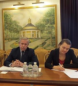 Kiev 14 de mayo de 2019- En el encuentro sostenido entre el presidente de la Unión de industriales y empresarios de Ucrania (UIEU), Anatoly Kinaj y la Encargada de Negocios a.i de Cuba en es país, Natacha Díaz Aguilera fue constatado el interés del empresariado ucraniano por aumentar las relaciones económico- comerciales con Cuba.