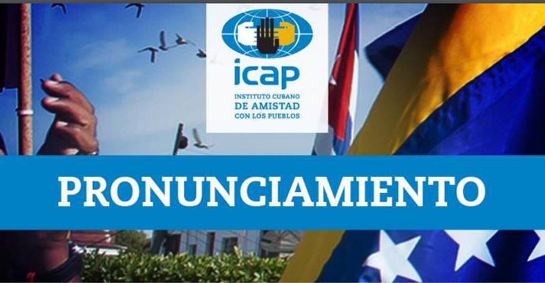 La Habana, 3 de mayo de 2020. El Instituto Cubano de Amistad con los Pueblos (ICAP) rechaza y repudia enérgicamente la intentona de invasión militar a la hermana República Bolivariana de Venezuela por vía marítima desde Colombia perpetrada en la madrugada de hoy, con el propósito manifiesto de subvertir a la heroica Revolución Bolivariana.