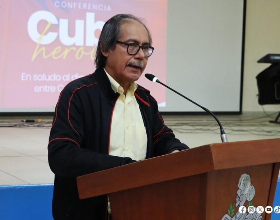 Managua, 19 de abril: El auditorio Roberto González de la Universidad Nacional Autónoma de Nicaragua fue sede de la conferencia titulada “Cuba heroica”, impartida por el diputado sandinista Freddy Franco, quien además se desempeña como secretario general de la Federación de Profesionales Docentes de la Educación Superior de Nicaragua.