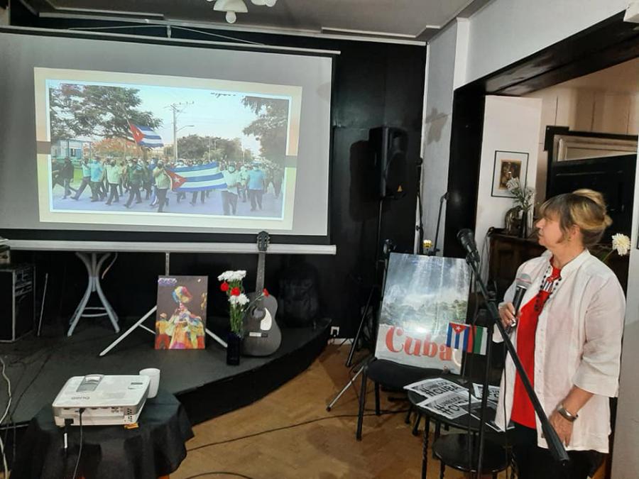 La presentación de la embajadora cubana incluyó también numerosas imágenes que desmienten la sucia campaña medática orquestada cotra Cuba a raíz de los hechos del 11 de julio. Comentó también la marcha de la campaña de vacunación, las medidas sociales adoptadas recientemente por el gobierno cubano, dirigidas a proteger a los sectores más vulnerables de nuestra población.