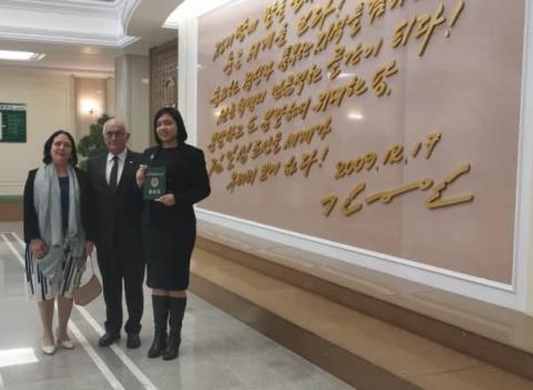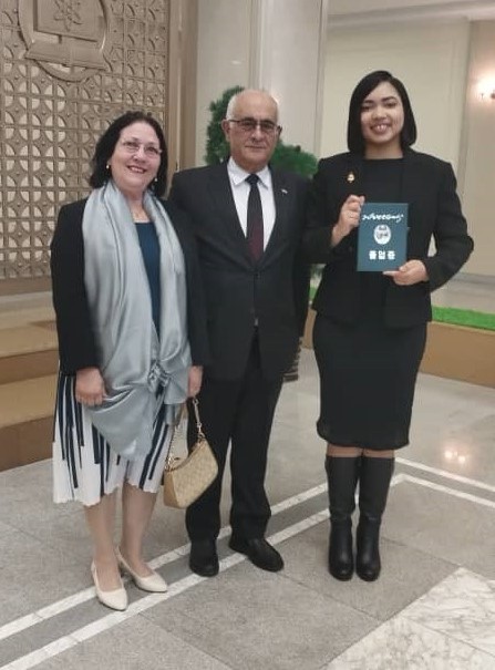 Pyongyang, 27 de Marzo/2026--Tras culminar sus estudios de Licenciatura en Lengua Coreana, la trabajadora del ESTI Elaine Velázquez Quesada recibió su Título y el Sello distintivo de graduada de la Universidad “KIM IL SUNG”. El solemne acto estuvo presidido por el Rector General de la Universidad, Dr. Kim Sung Chan y contó con la presencia del Embajador Extraordinario y Plenipotenciario de Cuba, Eduardo L. Correa García, así como con representantes del claustro universitario. Esta graduación constituye un ejemplo más del intercambio entre la República de Cuba y la República Popular Democrática de Corea en la formación y calificación de Recursos Humanos en beneficio recíproco, proceso iniciado con posterioridad al establecimiento de relaciones diplomáticas entre ambos países. Estos intercambios son parte del legado de amistad y solidaridad recíprocas que las generaciones actuales recibimos del Gran Líder del Pueblo Coreano, Kim Il Sung, y el Comandante en Jefe, Fidel Castro Ruz.