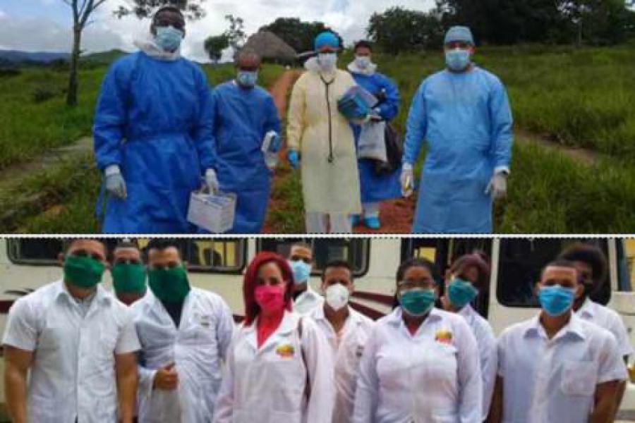 Miembros del contingente Ernesto Guevara -creado para asistir de manera solidaria en los lugares más afectados por la pandemia y formado por expertos de la isla-, integran tres equipos de trabajo; dos en las fronteras con Colombia y Brasil, y el tercero desplegado en Maracaibo, estado de Zulia, azotado por el principal evento de transmisión comunitaria del país.