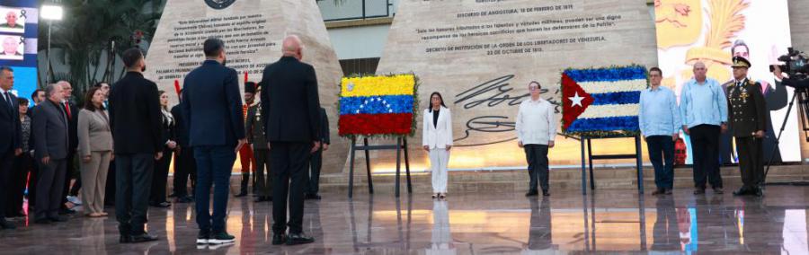 Durante la ceremonia, el Canciller cubano expresó el respaldo inquebrantable de la isla tras los recientes ataques que resultaron en el secuestro del Presidente Constitucional, Nicolás Maduro Moros, y la Primera Combatiente, Cilia Flores. Rodríguez Parrilla calificó de "emocionado tributo" la entrega de los combatientes venezolanos y cubanos que, en un combate desigual, defendieron la integridad del territorio frente a las fuerzas extranjeras, reafirmando que la sangre derramada sella el compromiso histórico entre ambas naciones bajo el pensamiento de Bolívar y Martí.