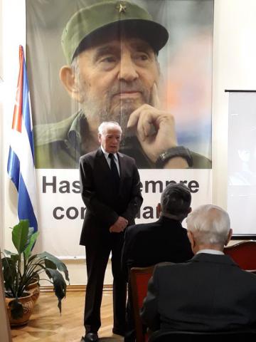 La actividad, que tuvo lugar en la sede de la Embajada de Cuba en Ucrania, comenzó con la proyección de un breve documental que mostró los momentos más relevantes de la vida del líder de la Revolución, Fidel Castro.