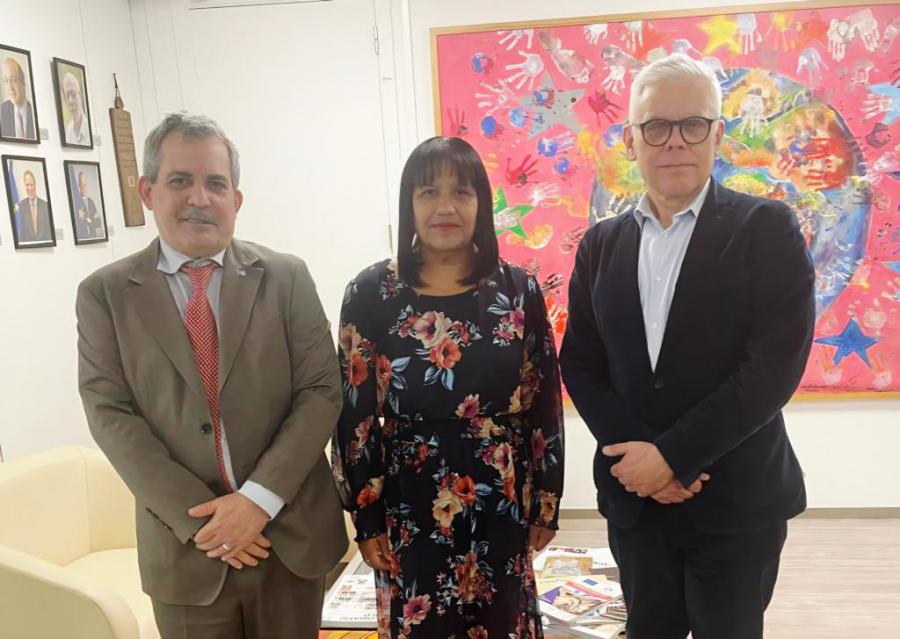 Asimismo, sostuvo un encuentro con Maciej Popowski, director general de Protección Civil y Ayuda Humanitaria de la Comisión Europea (DG ECHO), durante el cual se intercambió sobre experiencias y oportunidades de colaboración en materia de respuesta a desastres, resiliencia y asistencia humanitaria.