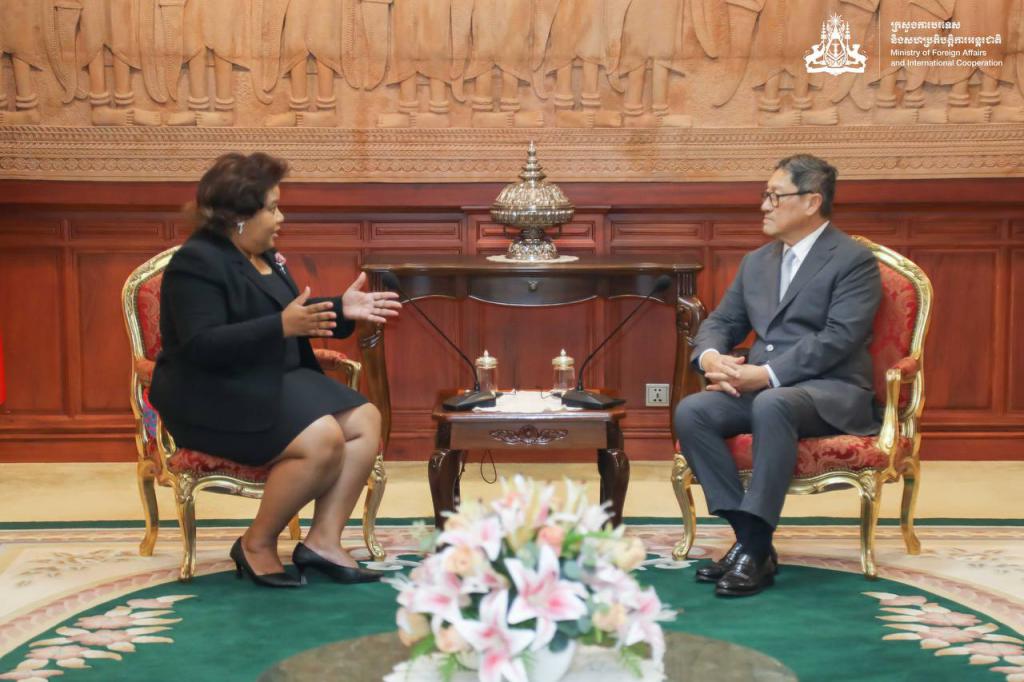 El viceprimer ministro y Ministro de Relaciones Exteriores de Cambodia, Sok Chenda Sophea, recibió a la Embajadora cubana, Liurka Rodríguez Barrios, a quien ratificó la invariable posición del reino en contra del injusto bloqueo económico, comercial y financiero de Estados Unidos en contra de la Isla.