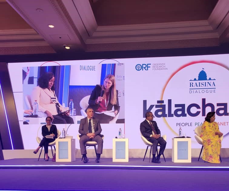 Nueva Delhi, 18 de marzo de 2025.- El viceprimer ministro de la República de Cuba, Eduardo Martínez Díaz, intervino en el Panel de Discusión “Climate Cataclysm: The Adaptation Agenda is Gasping”, en el evento Diálogo de Raisina. Destacó el peligro que representa el cambio climático para billones de personas en el mundo, particularmente la vulnerabilidad de los pequeños estados insulares en desarrollo, y el modo en que estos fenómenos, cada vez más recurrentes en condiciones de un clima cambiante, comprometen alcanzar los objetivos del desarrollo sostenible.