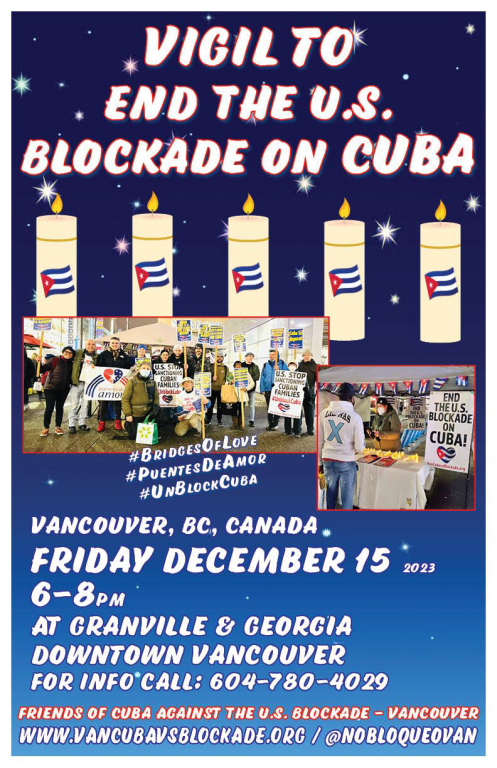 15 de diciembre – ¡VIGILIA EN VANCOUVER PARA PONER FIN AL BLOQUEO DE EEUU CONTRA CUBA!