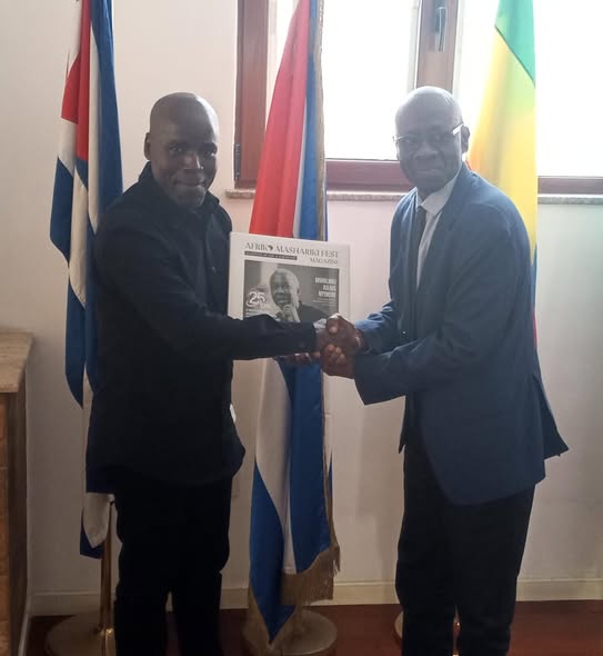 Addis Abeba, 13 de febrero de 2026.- El Dr. ugandés Kisembo Ronex Tendo, fundador y CEO del grupo Afrika Mashariki Fest, realizó una visita de cortesía a la Embajada de Cuba en Addis Abeba, en el contexto de su participación en la 39ª Cumbre de la Unión Africana.