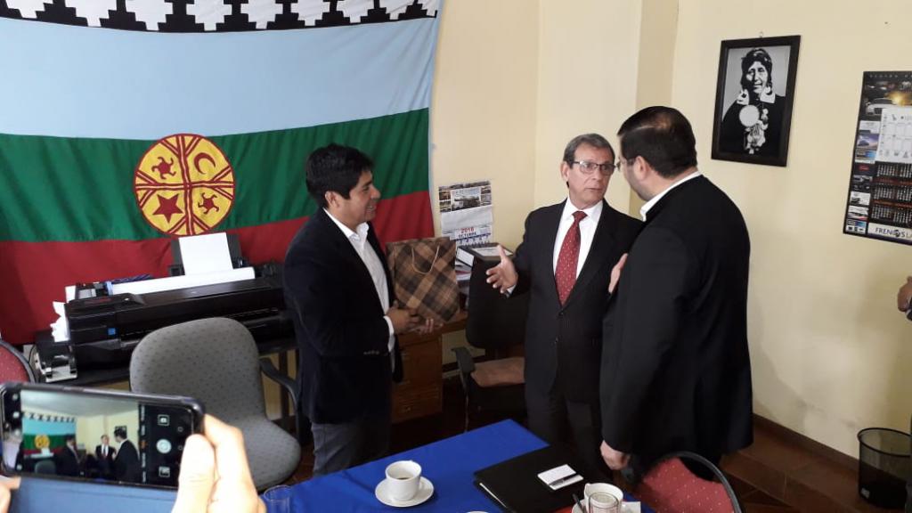 El Embajador Jorge Lamadrid Mascaró sostuvo un fructífero encuentro con el alcalde de la comuna de Renaico, Juan Carlos Reinao Marilao, junto al equipo de la Secretaría General de la Asociación de Municipalidades con Alcaldes Mapuches, de la cual es su Presidente. En el intercambio sostenido se pasó revista a los sectores en los que es factible trabajar para el desarrollo de la colaboración mutuamente beneficiosa. Se puso de manifiesto en la posterior visita a Renaico, la labor que realiza el Alcalde y sus colaboradores en áreas como la salud, en la que la localidad cuenta con un hospital con una farmacia plenamente dotada de los medicamentos más modernos, y una sala de urgencias con todas las condiciones para una óptima atención al paciente. La visita al Liceo Tecnólogico fue propicia para asistir a la Segunda Feria Tecnológica que desarrolla el centro. Los encuentros contribuyeron al estrechamiento de los lazos de amistad entre esta región del Sur de Chile y la Isla.