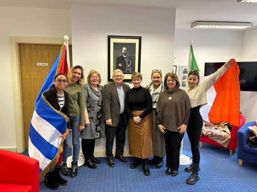 Dublín, 29 de febrero de 2024. Amigas de Cuba y admiradoras de su Revolución, procedentes del condado de Donegal, el más septentrional de Irlanda, fueron recibidas por el embajador cubano, Bernardo Guanche Hernández y la Consejera a cargo de los Asuntos Consulares, Mabel Rodríguez Morera, con quienes sostuvieron un animado y fraternal intercambio.