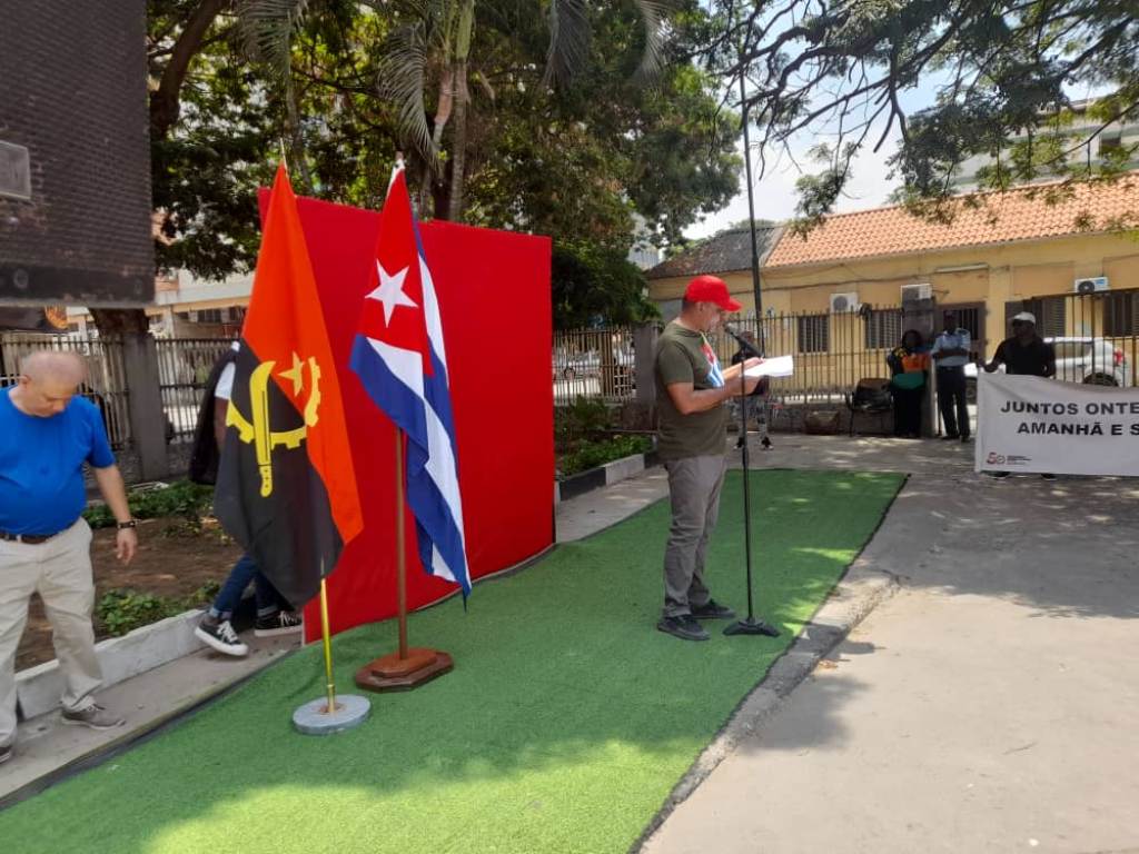 “Rechazamos toda forma de injerencia que vulnere el derecho de una nación a decidir su propio destino”, sostuvo en el acto la profesora Heidy Cantillo, representante del grupo de pedagogos cubanos en Angola.