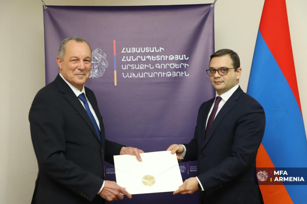 Заместитель министра иностранных дел Республики Армения Роберт Абисогомонян принял недавно назначенного посла Республики Куба в Республике Армения Альфредо Фиделя Ньевеса Портуондо (резиденция в Астане) по случаю его передачи копий верительных грамот.