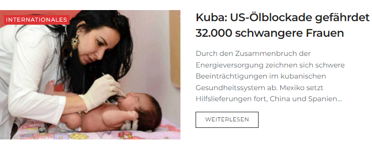 Viena, 19 de febrero. El periódico Zeitung der Arbeit (ZdA), órgano oficial del Partido del Trabajo de Austria (PdA), publicó hoy un artículo que visibiliza las consecuencias del bloqueo petrolero impuesto por Estados Unidos contra Cuba, con énfasis en la salud materno-infantil.