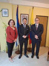 Quito, 30 de septiembre de 2025. El embajador de Cuba, Basilio A. Gutiérrez García, recibió en la tarde de hoy en la sede diplomática al Ing. Christian Miguel Rivera, Estratega de Relaciones Internacionales de la Universidad UNIANDES, con el objetivo de fortalecer los lazos de amistad y el intercambio cultural entre las Instituciones de Educación Superior del Ecuador y Cuba. En el intercambio participó también la Dra. C.
