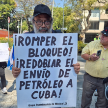 Ciudad de México, 15 de febrero de 2026.— Cerca de 300 personas, entre integrantes de organizaciones sociales y políticas, colectivos solidarios, ciudadanos mexicanos y cubanos residentes, se congregaron en las afueras de la Embajada de Cuba en México para expresar su firme apoyo a Cuba y a su Revolución, así como para rechazar de manera enérgica la política agresiva, cruel e inhumana del gobierno de los Estados Unidos contra nuestro país, en particular la más reciente orden ejecutiva firmada el pasado 29 de enero por el presidente Donald Trump, que recrudece el bloqueo y