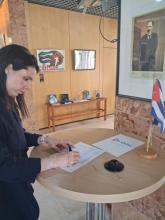 En ceremonia simultánea en las sedes de la Embajada de Cuba en Berlín y la Oficina Diplomática de Cuba en Bonn, los trabajadores de la Misión Estatal de Cuba en Alemania respondieron al llamado realizado por el Presidente Miguel Díaz-Canel Bermúdez, el pasado 16 de abril, y plasmaron su Firma por la Patria.