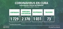 Se confirmaron 12 nuevos casos de COVID-19, para un acumulado de 1741 en Cuba.