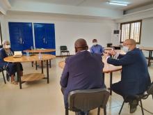 Lomé, 15 de mayo de 2020- Representantes de la OMS, la UNICEF, el Ministerio de Salud de Togo se unieron hoy a los miembros de la Brigada Médica Cubana "Henry Reeve" en Togo para organizar acciones que permitan diagnosticar y combatir el coronavirus en el país. En el encuentro se ultimaron detalles sobre la iniciativa de integrar tres equipos de trabajo con el objetivo de hacer una evaluación médica-epidemiológica en diversas regiones del país donde la situación de la pandemia se ha complejizado.