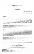 Praia, 26 de abril de 2018: El Exmo. El Dr. Jorge Pedro Maurício dos Santos, Presidente de la Asamblea Nacional de Cabo Verde, envió un mensaje de felicitación al Sr. Esteban Lazo Hernández, con ocasión de su reelección como Presidente de la Asamblea Nacional del Poder Popular. En su carta, el presidente de la legislatura caboverdiana también incluyó sus felicitaciones al compañero Miguel Díaz-Canel Bermúdez, por su elección como Presidente de los Consejos de Estado y Ministros de Cuba.