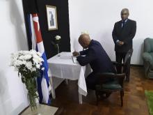 CANCILLER DE CABO VERDE FIRMA LIBRO DE CONDOLENCIAS POR FALLECIMIENTO DEL COMANDANTE EN JEFE